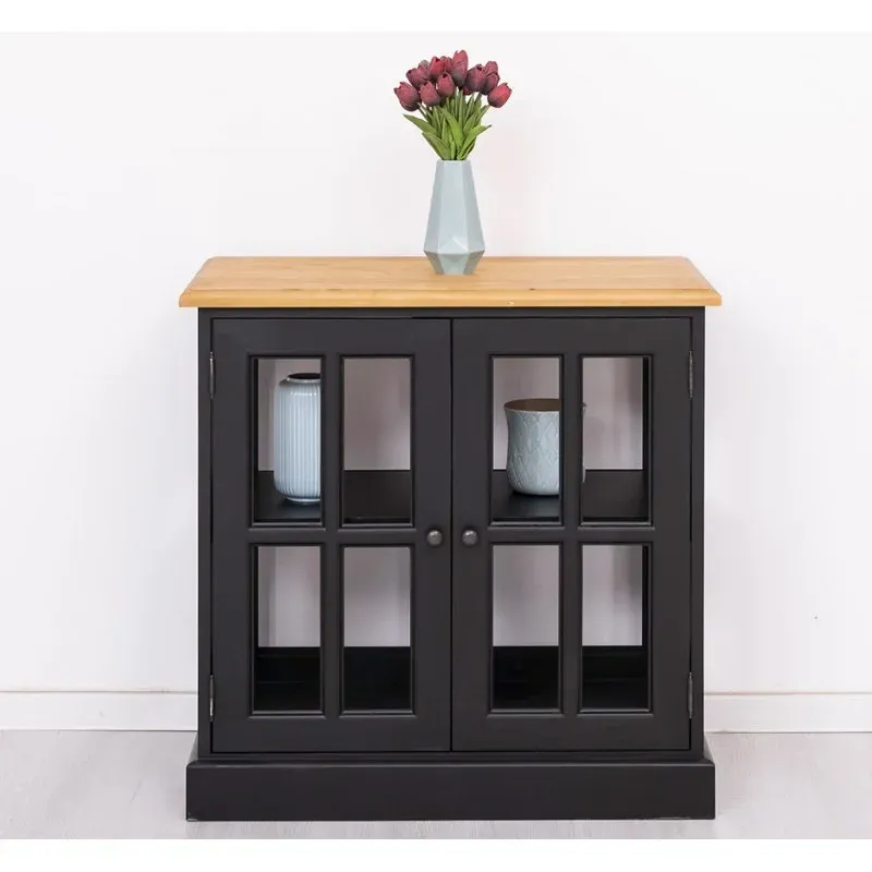 VITRINE BASSE 4 FACES VITREE PIN MASSIF NOIR 91.5 X 90 X 52 CM