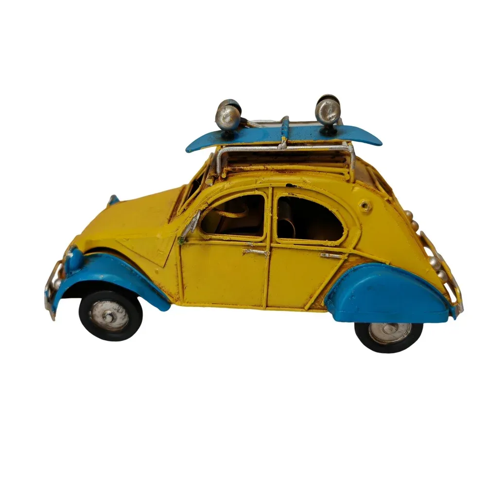 VOITURE DECORATIVE 2CV JAUNE ET BLEU METAL 16.5 X 9 X 7 CM