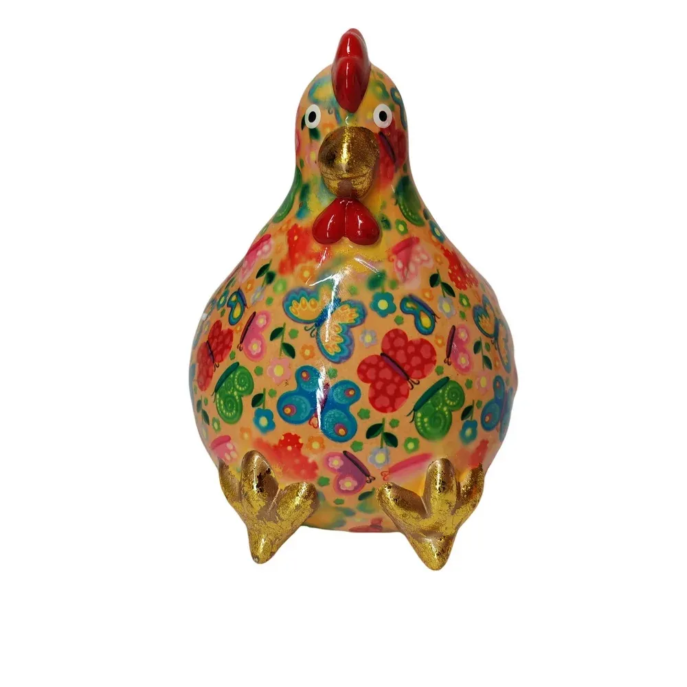TIRELIRE POULE CLAIRE POMME PIDOU PAPILLONS MULTICOLORE