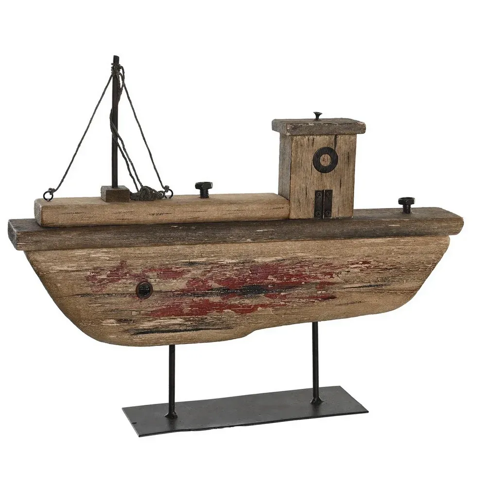 BATEAU EN BOIS FLOTTE ET METAL DIMENSIONS 38 X 8 X 30 CM