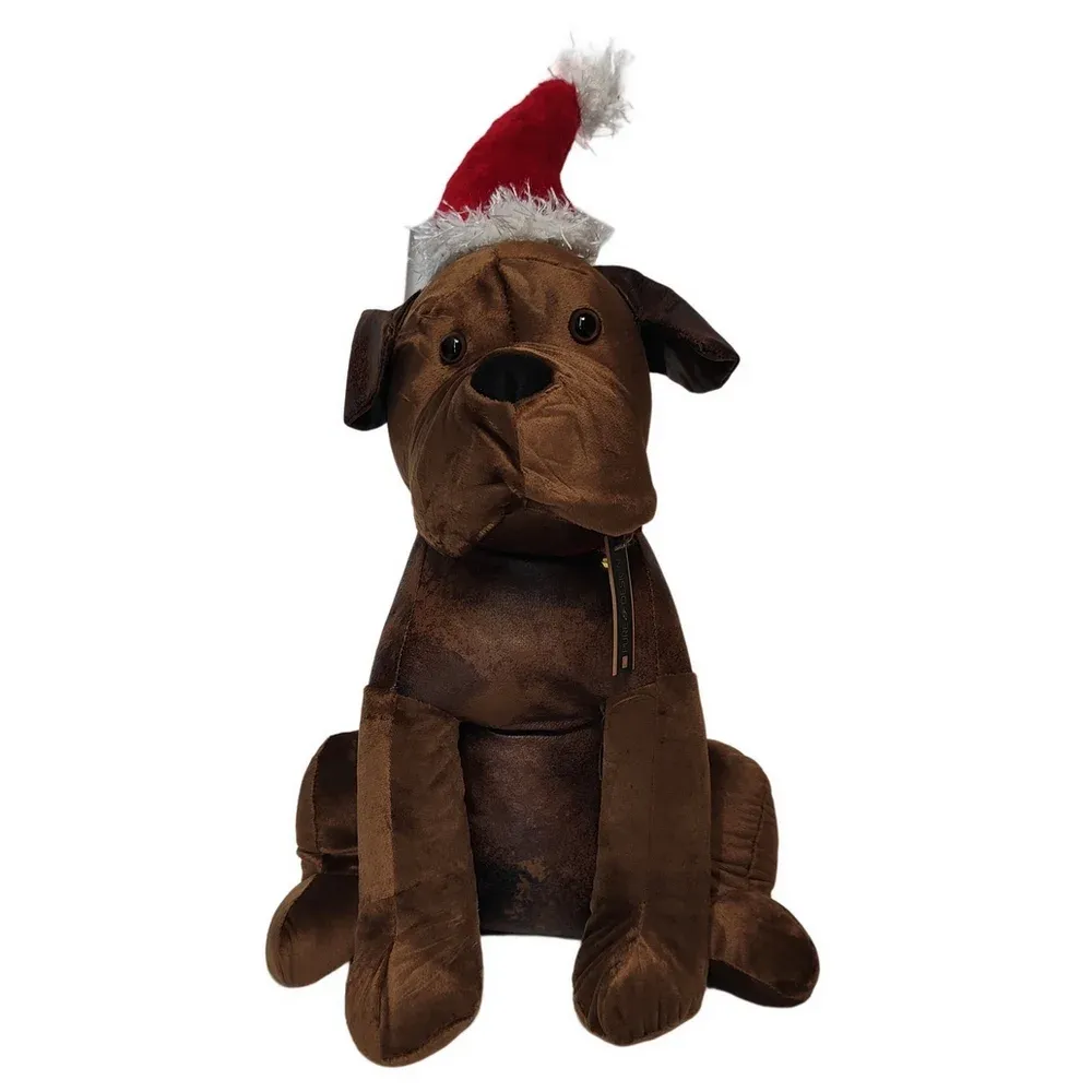 BLOQUE PORTE CHIEN FACON VIEUX CUIR ET TISSU BONNET DE NOEL 42 X 23 X 22 cm