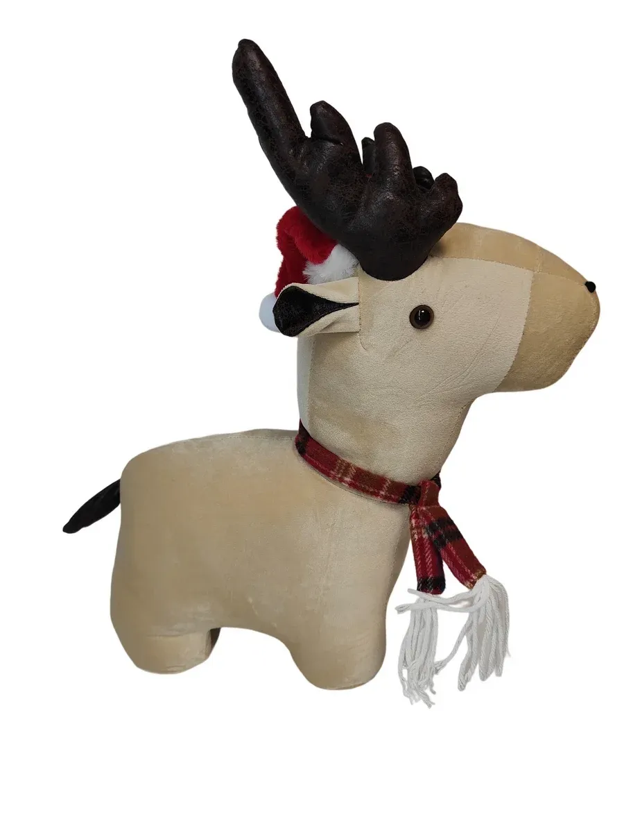 BLOQUE PORTE CARIBOU VELOURS ECRU BONNET ROUGE ECHARPE A CARREAUX