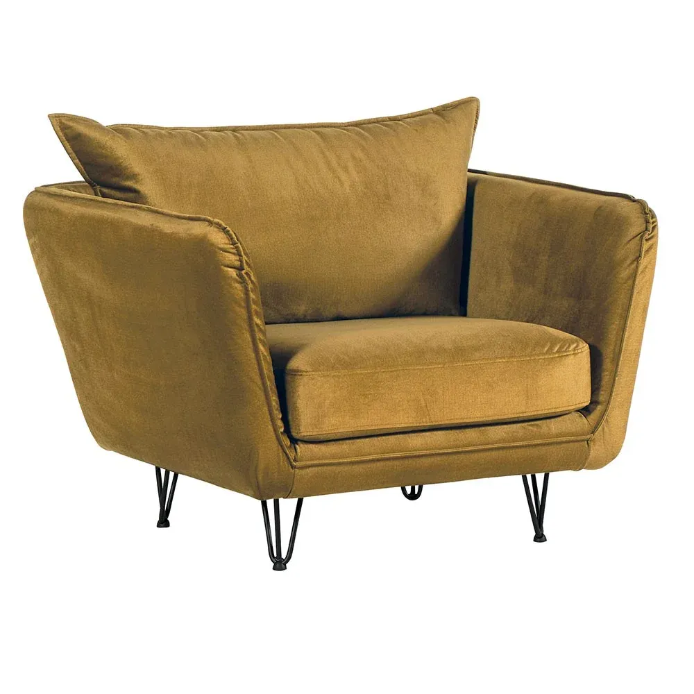 FAUTEUIL 1.5 PLACES HASTING MONOLITH TISSU OCRE PIEDS FER NOIR 109 X 86 X 95 CM