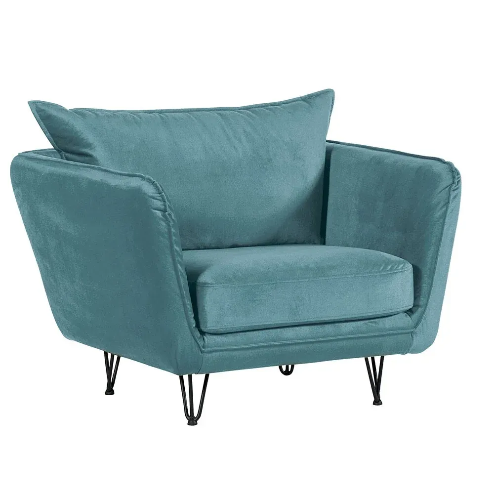 FAUTEUIL AROS EN VELOURS BLEU PETANT H 75 X L 60 X P 60 CM