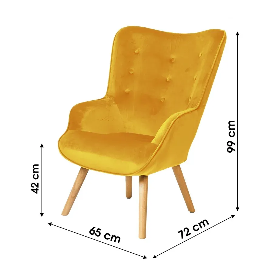 FAUTEUIL NOOR TISSU VELOURS MOUTARDE 65 X 72 X 99 CM
