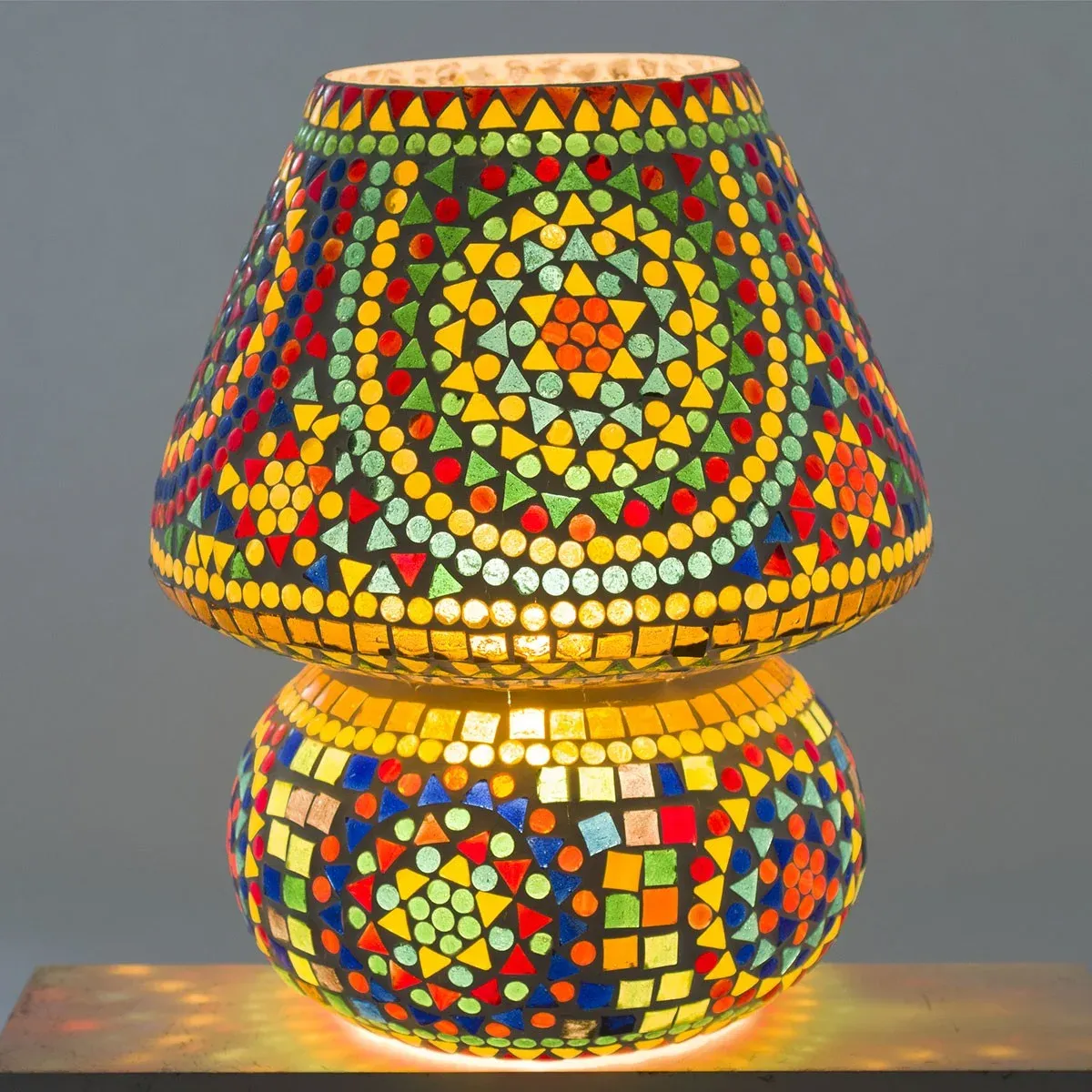 LAMPE A POSER MOSAIQUE MULTICOLORE CHAMPIGNON 23 X 23 x 31 CM