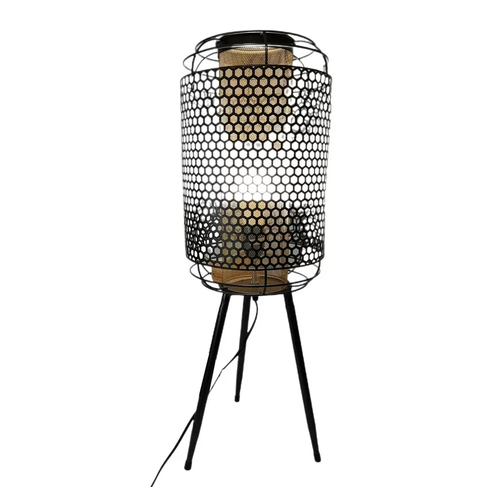 LAMPE CYLINDRIQUE TREPIED METAL GRILLAGE INDUSTRIEL 24 X 71 X 24 CM