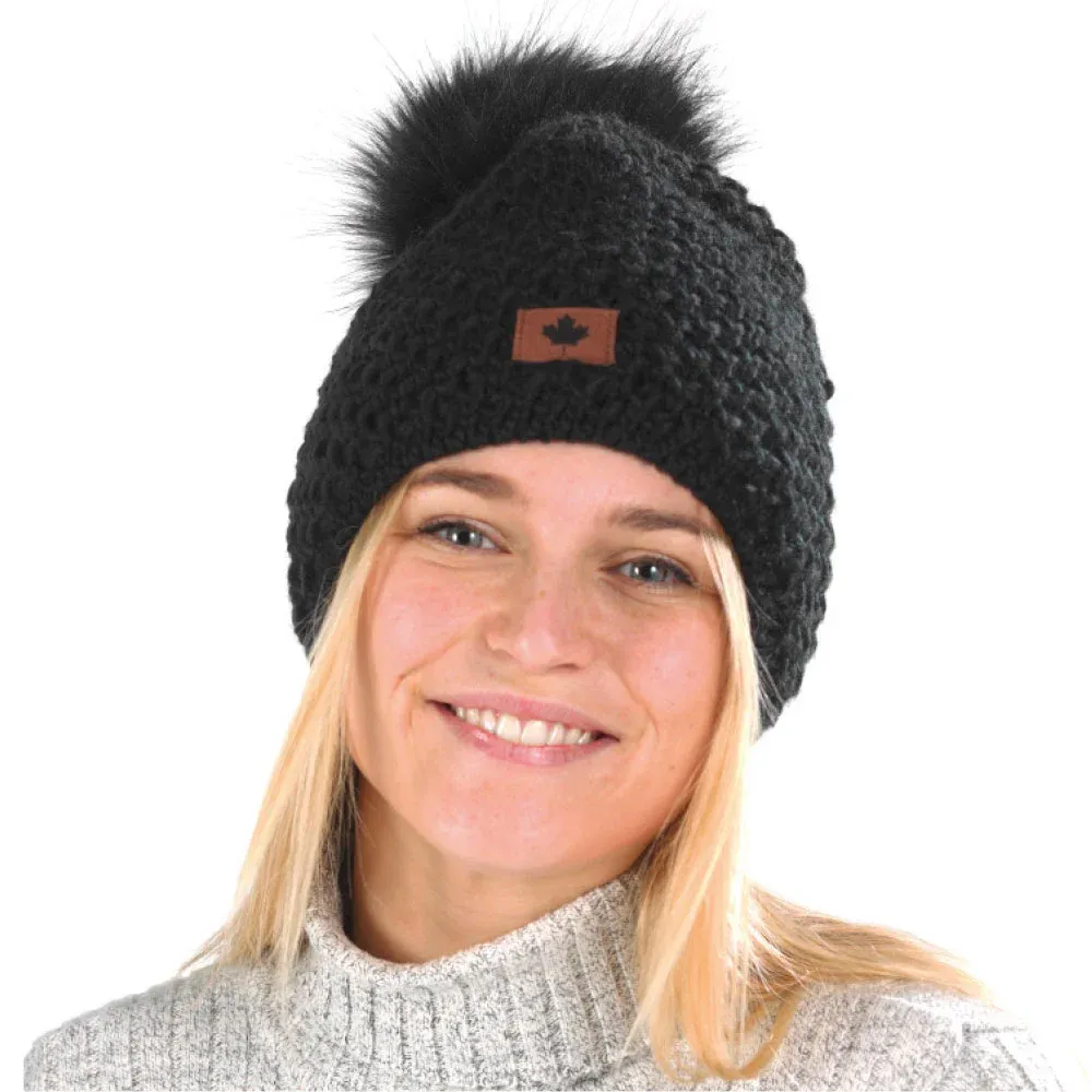 BONNET DOUBLURE POLAIRE POMPON COULEUR NOIR 21 X 32 CM