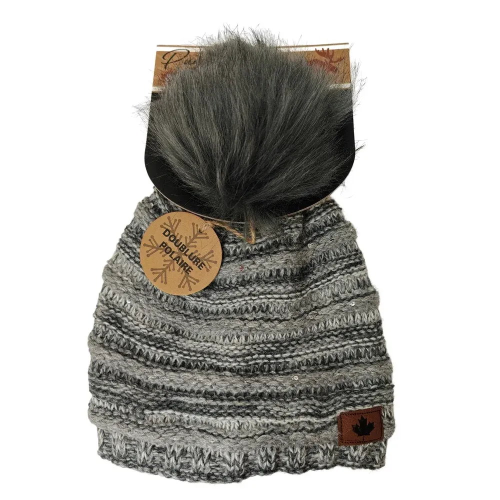 BONNET DOUBLURE POLAIRE POMPON COULEUR GRIS ET GRIS FONCE 24 X 30 CM