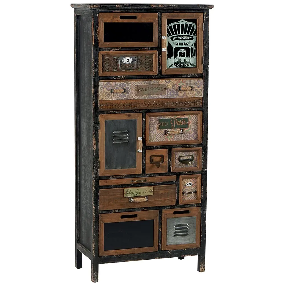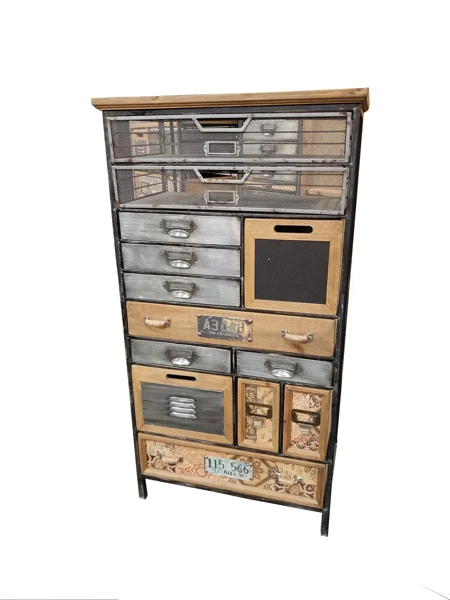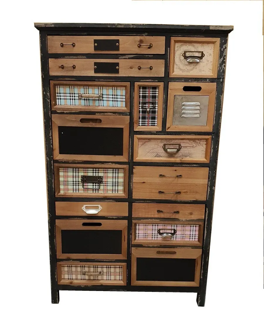 ARMOIRE DECO 13 TIROIRS FER ET BOIS 112 X 60 X 34 CM