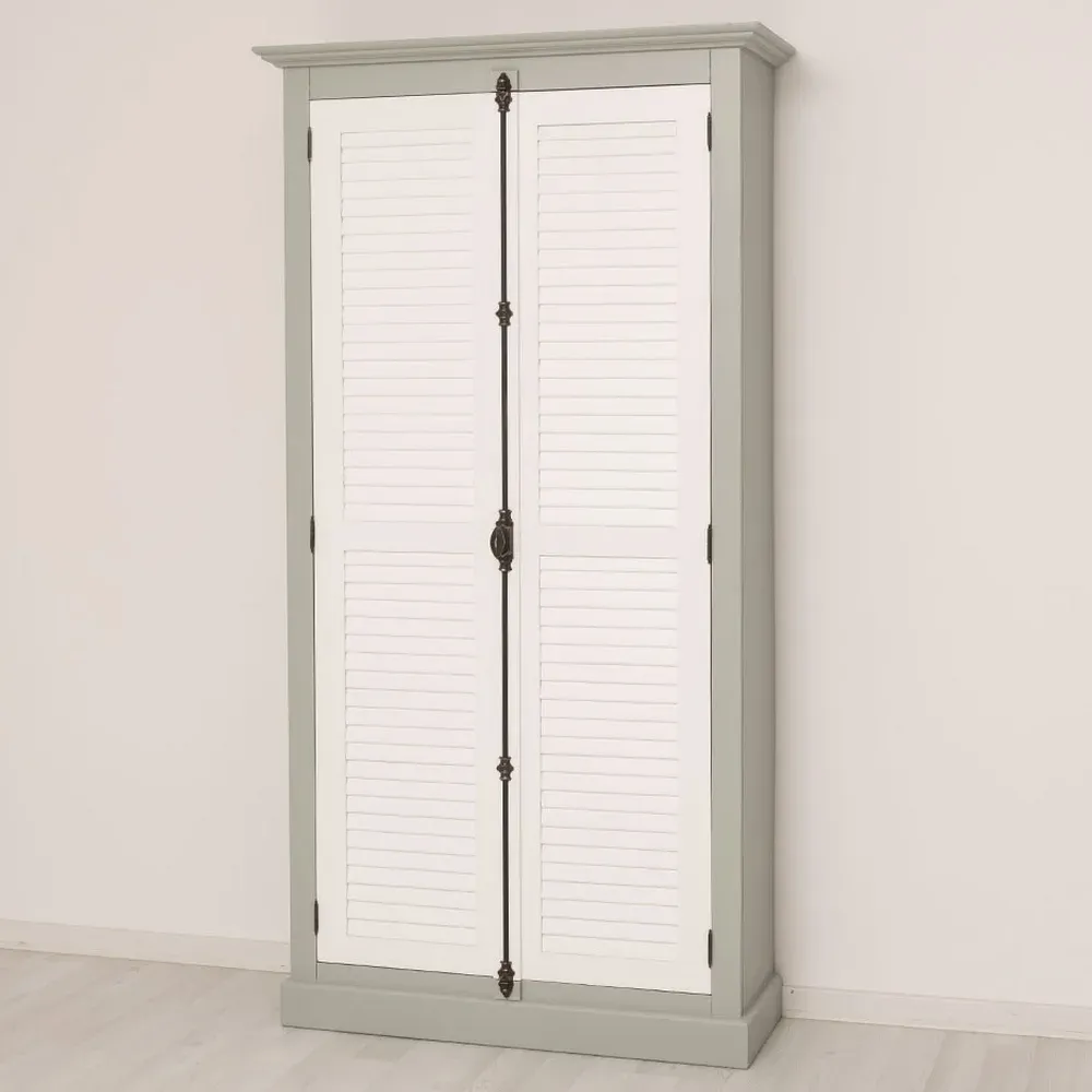 ARMOIRE 2 PORTES PERSIENNE PIN MASSIF BLANCHE / LASURE GRISE 210 X 109 X 40 C
