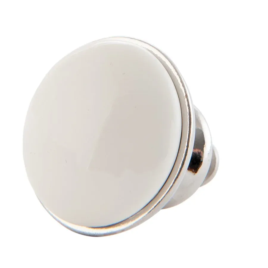 BOUTON DE PORTE CERAMIQUE BLANC 3 CM ET METAL