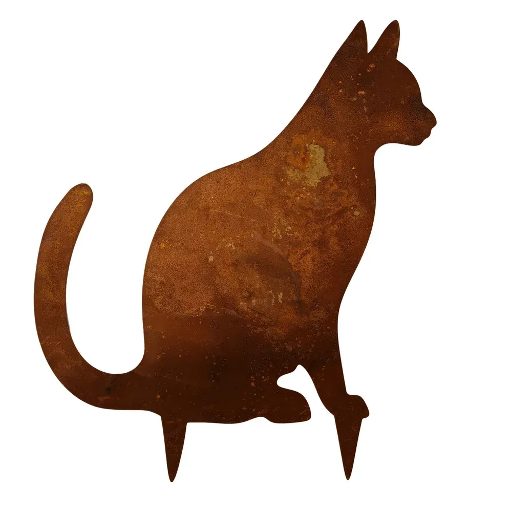 PIQUE DE JARDIN CHAT METAL ROUILLE 41 X 47 CM