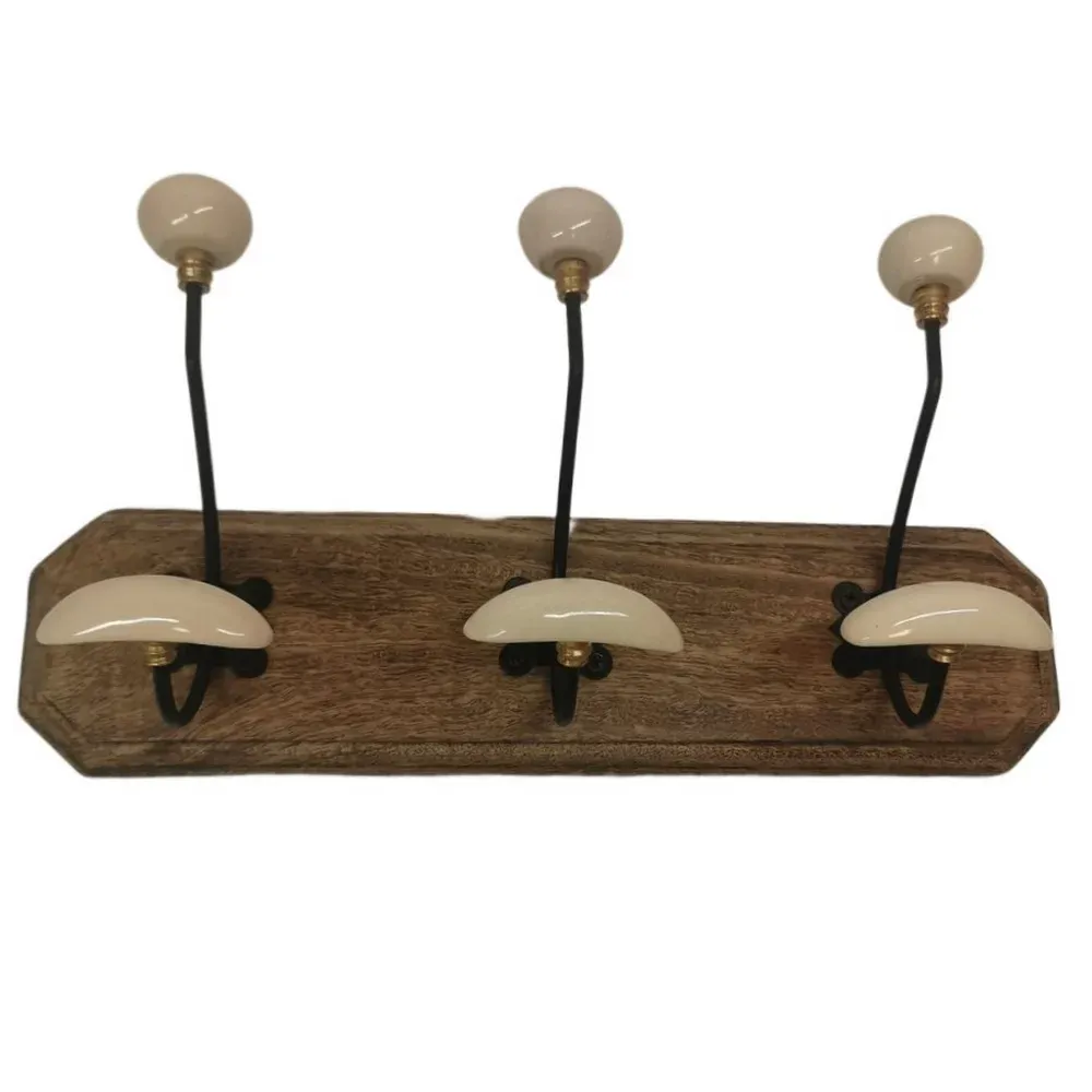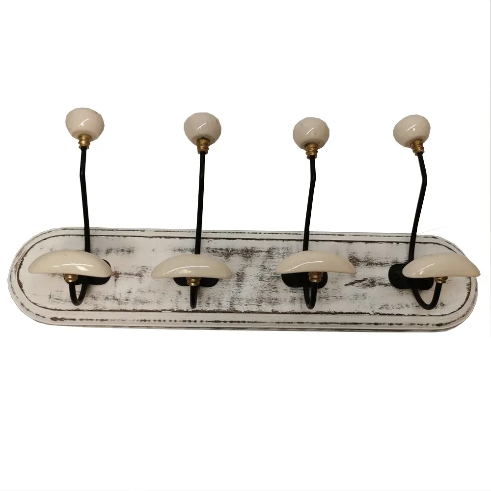 PATERE QUALITES 4 TETES 48 CM BOIS CIRE PATINE ET CERAMIQUE