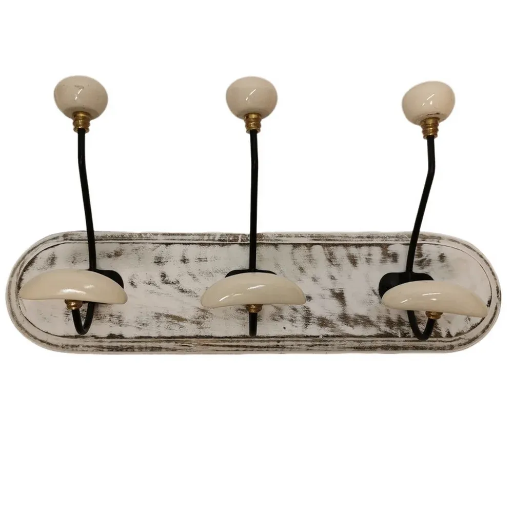 PATERE QUALITES 3 TETES 40 CM BLANC PATINE ET CERAMIQUE