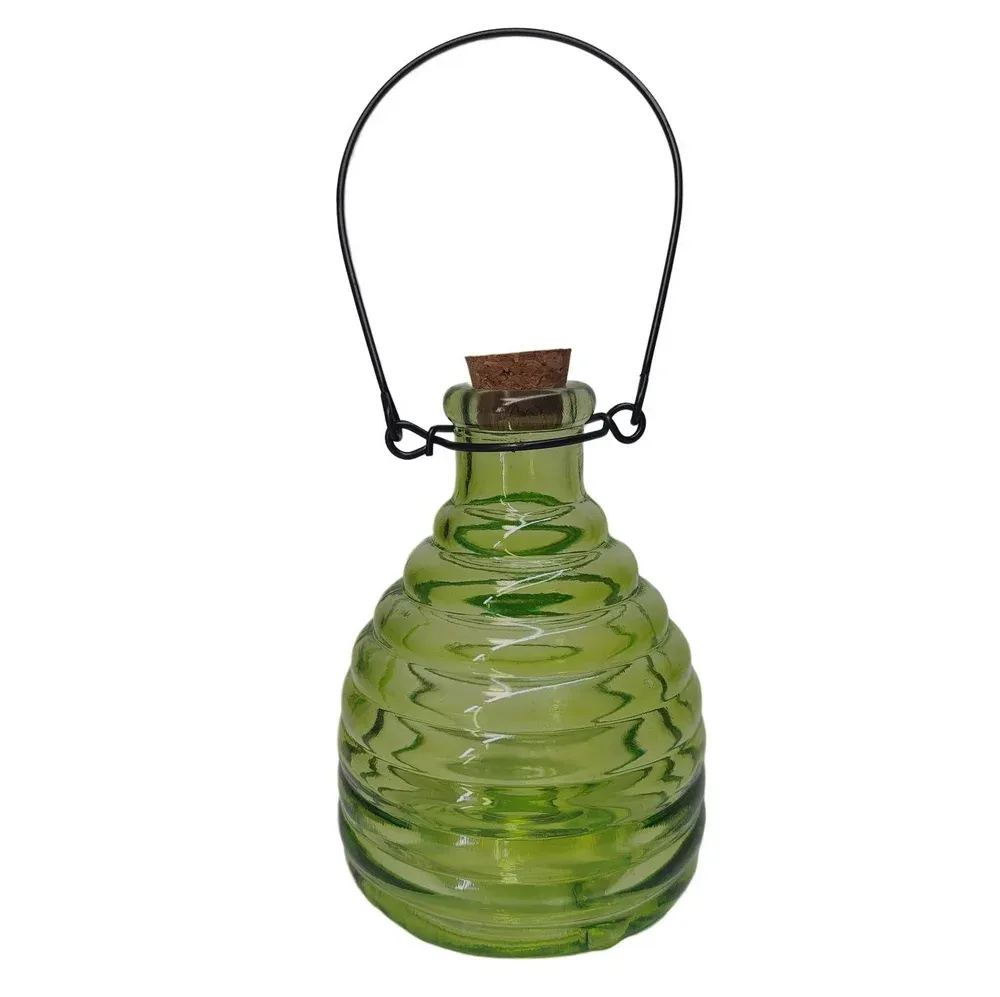 PIEGE A GUEPES VERRE COULEUR VERTE DIAM 9 CM HAUT 14 CM