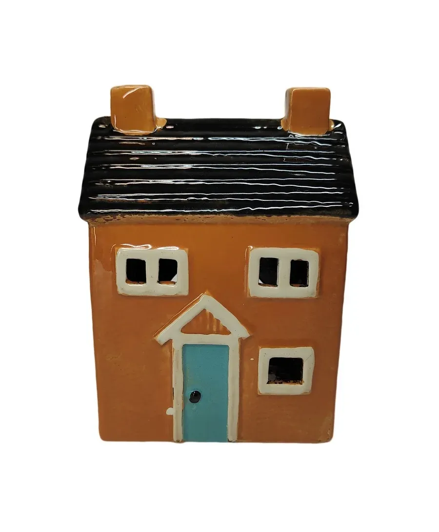 PHOTOPHORE DECOR MAISON EN PORCELAINE SABLE NOIR ET BLEU 7.5 X 15.5 X 10.5 CM