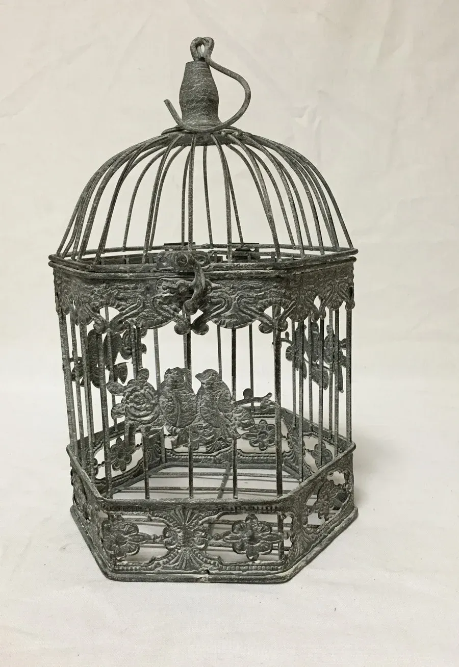 PHOTOPHORE CAGE OISEAUX HEXAGONALE EN METAL 26 X 41 X 23 CM