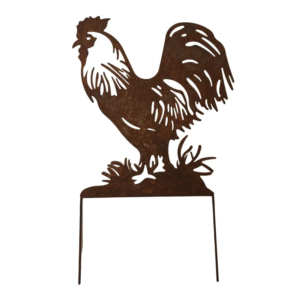 PIQUE DE JARDIN POULE EN METAL ROUILLE 9 X 38 CM