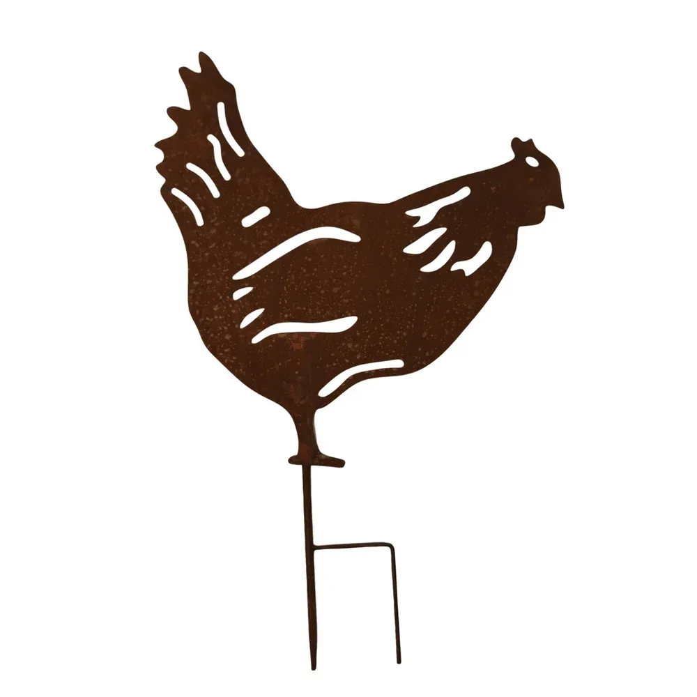 PIQUE DE JARDIN POULE EN METAL ROUILLE 37 X 55 CM