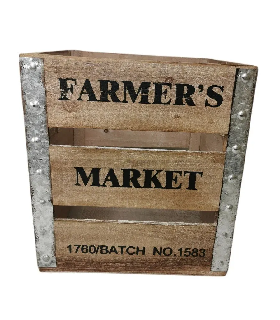 CAISSE A POMME EN BOIS ET ACIER 36.5 X 25 X 23 CM