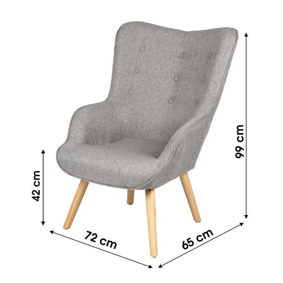 FAUTEUIL FELIZ EN VELOURS GRIS PIEDS BOIS CLAIR TOURNES 82 X 75 X 75 CM