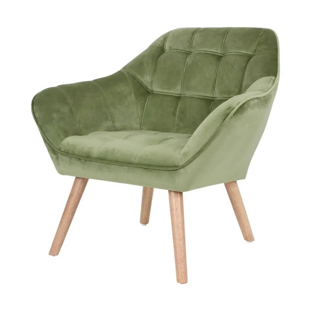 FAUTEUIL FELIZ EN VELOURS VERT PIEDS BOIS CLAIR TOURNES 82 X 75 X 75 CM