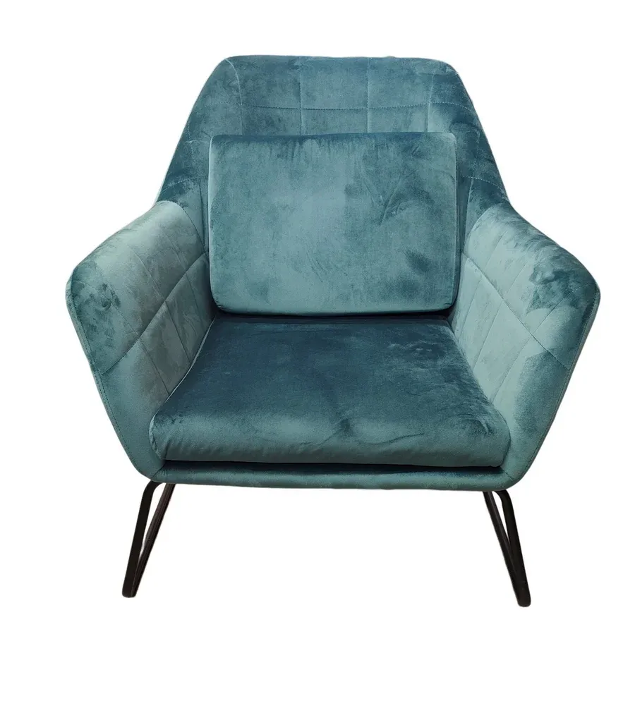 FAUTEUIL KATEL EN VELOURS BLEU INDUS PIEDS METAL NOIR 81 X 72 X 79 CM