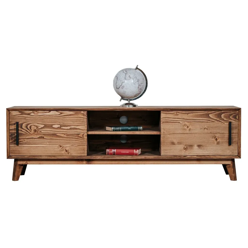 MEUBLE TV NOSTALGIE 2 PORTES PIN MASSIF BROSSE 146 X 40 X 48 CM