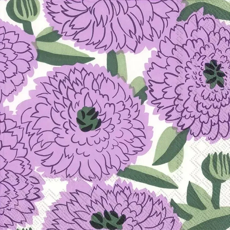 20 SERVIETTES EN PAPIER FLEURS COULEUR LILAS 33 X 33 CM