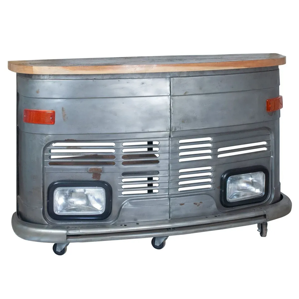 BAR COMPTOIR FACE DE CAMION AVEC PHARE PLATEAU BOIS 166 X 44 X 105 CM