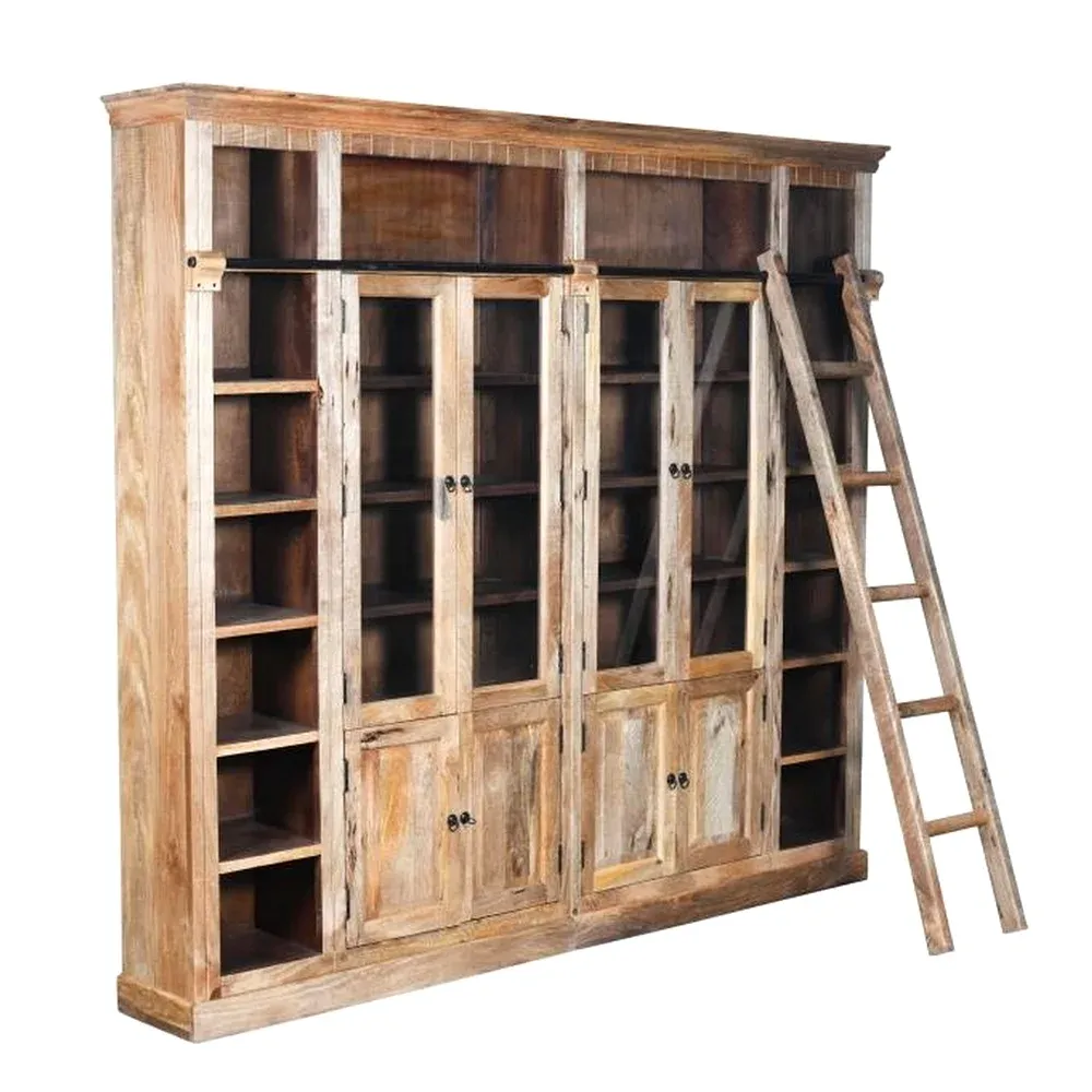 BIBLIOTHEQUE BOIS MANGUIER MASSIF 4 PORTES 248 X 36 X 221 CM