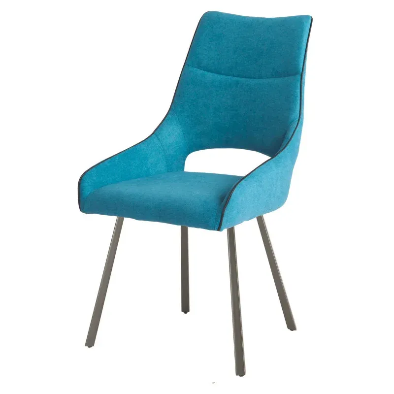 CHAISE ASCOT PIED METAL GRIS MAT ASSISE TISSU BLEU 45 X 64 X 95 CM