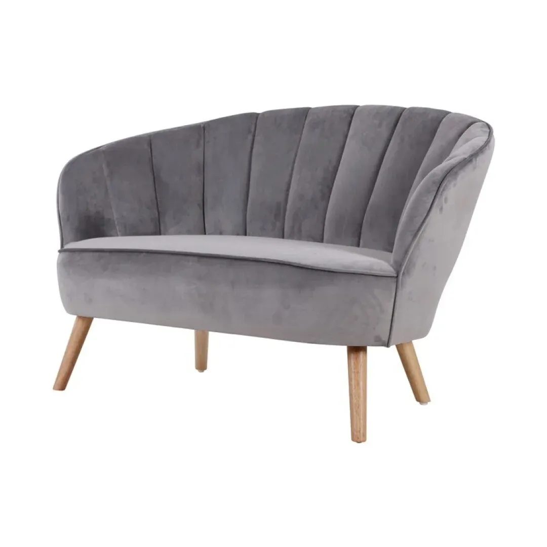 CANAPE JASPER EN VELOURS GRIS PIEDS BOIS CLAIR 120 X 50 X 76 CM