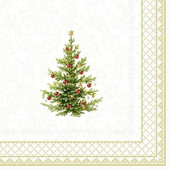 Ces serviettes en papier « Sapin de Noël » IHR donneront en toute simplicité un air chic et convivial à vos repas de fêtes, repas ou apéros. Un joli sapin de Noël qui une fois déplié représente quatre sapins attachées .
