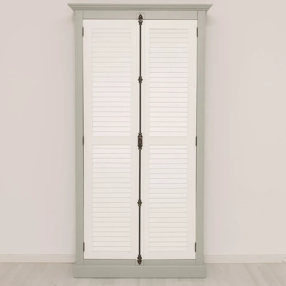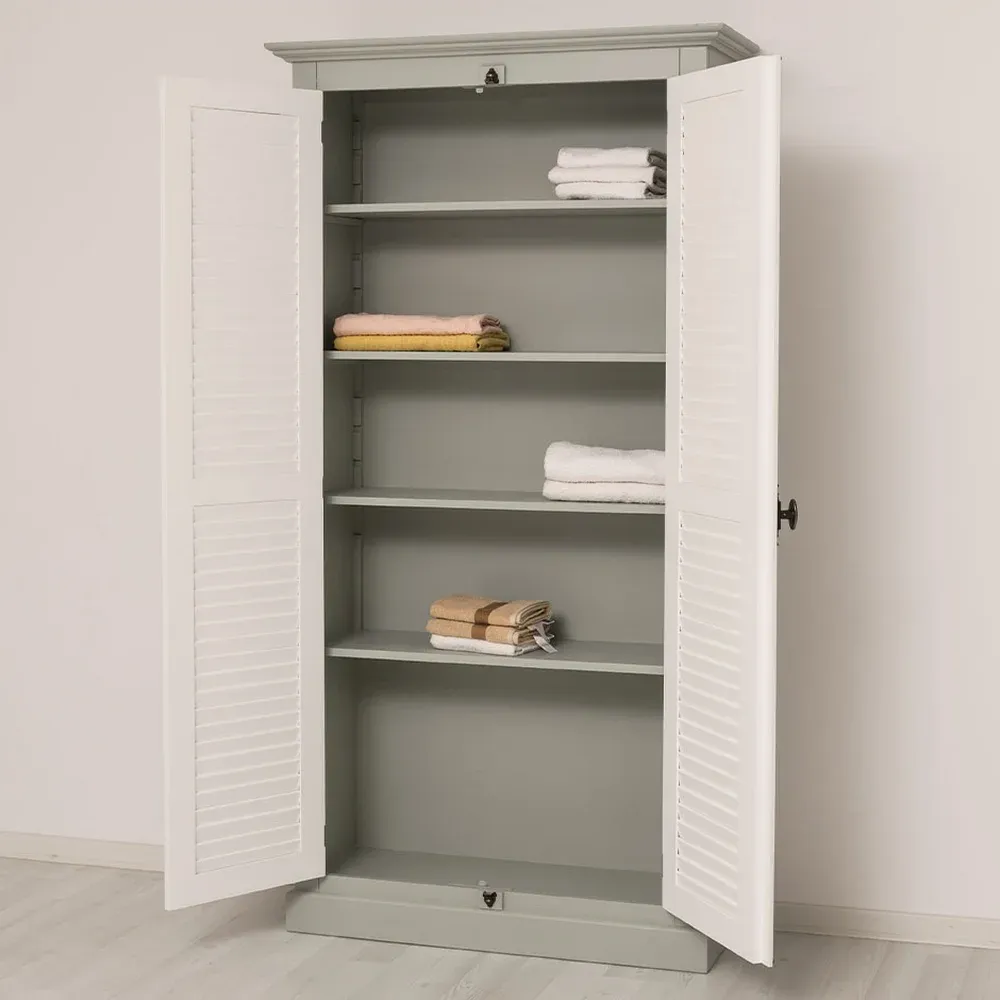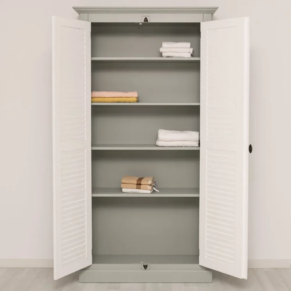 Armoire 2 portes persienne en pin massif couleur blanche et lasuré grisé