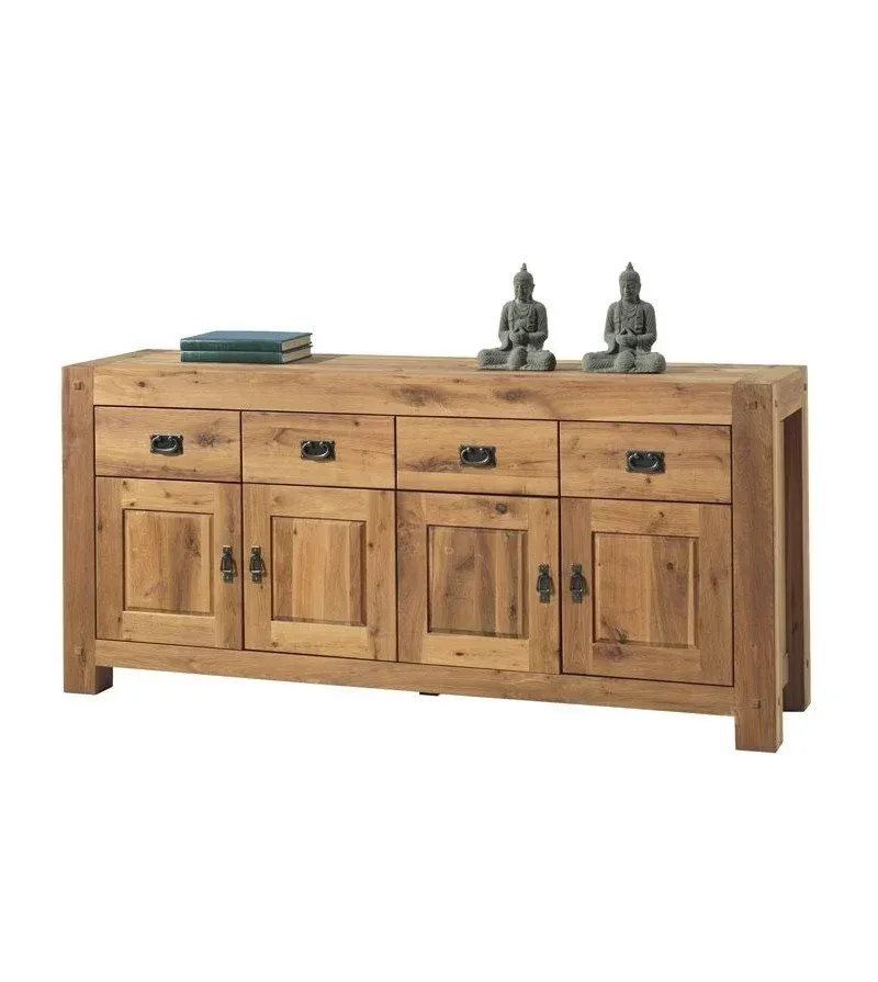 Meuble de la collection LODGE une création Casita en chêne huilé, plateau latté chêne, tiroirs sur rails métal ouverture totale, fonds, cotés,fonds de tiroirs et étagères contre plaqués chêne