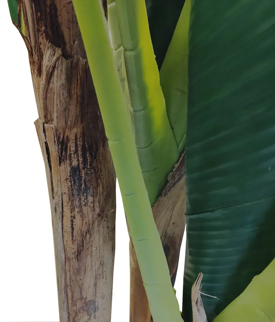 Matière tronc : PVC recouvert de feuilles de bananier séchées sur la base des troncs.