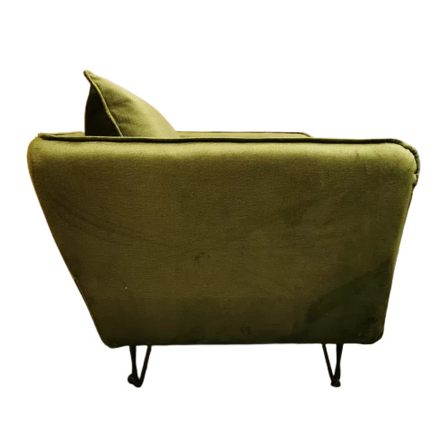 Hasting monolith Fauteuil droit 1.5 places Tissu velours couleur kaki 100% polyester. Hasting fauteuil 1.5 places Style et design contemporain – Structure en pin massif et panneaux de particules – Revêtement en tissu 100% polyester – Ferme – Garnis de mousse HR 35 kg/m3 sur ressort nosag – Avec accoudoirs – L’ensemble des coussins et dossier sont déhoussables Fabrication européenne – Fauteuil L 109 x P 95 x H 86 cm –