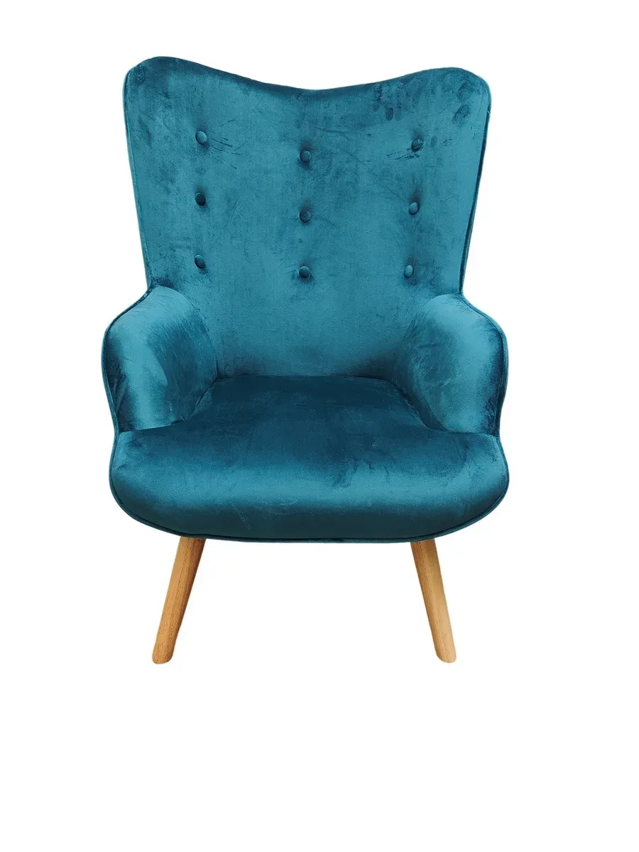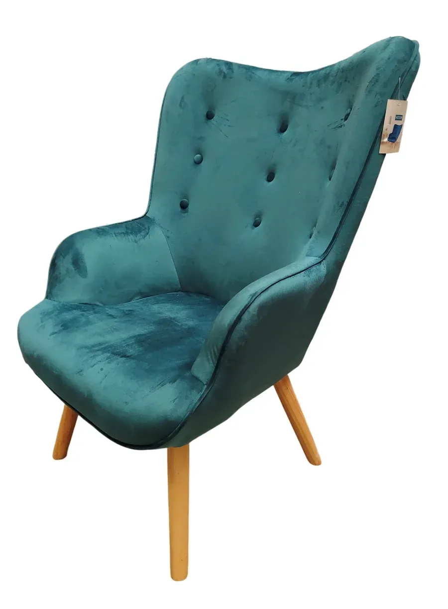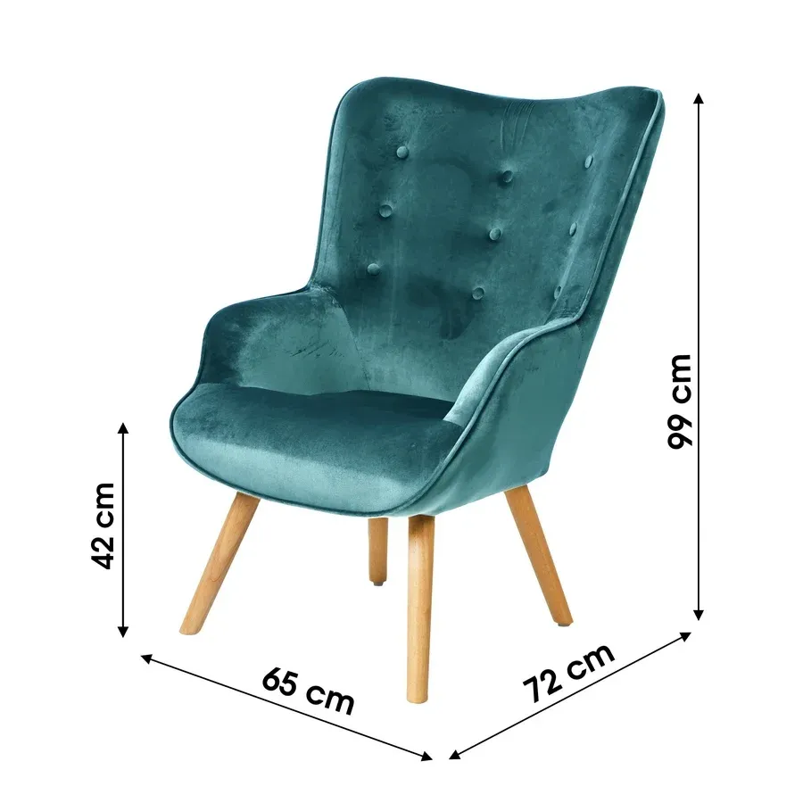 FAUTEUIL NOOR TISSU VELOURS BLEU CANARD 65 X 72 X 99 CM