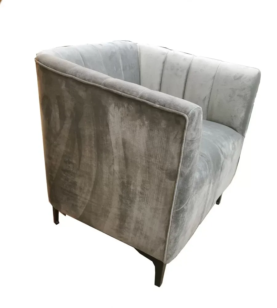 Fauteuil carré style VINTAGE modèle Pils grand confort – Structure en pin massif et panneaux de particules bois – Assise mousse polyuréthane densité 24 Kg/M3 sur sangles – Dossier en mousse polyuréthane densité 24 Kg/M3 – Pieds en métal noir à fixer – Recouvrement tissu 100% Polyester couleur gris – Livré prèt à monter .