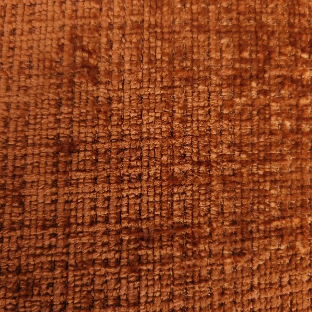 Un beau fauteuil en tissu Crémona couleur Terracotta avec repose pied .