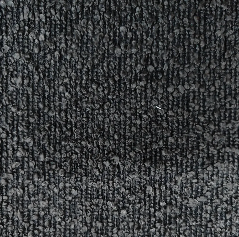 Fauteuil de collection RIPPLE, en tissu bouclette couleur Anthracite structure pin et contre plaqué assise mousse polyuréthane 24 kg sur sangle et ressorts, Dossier 22 kg tissu 100 % polyester, piétement en métal noir à fixer