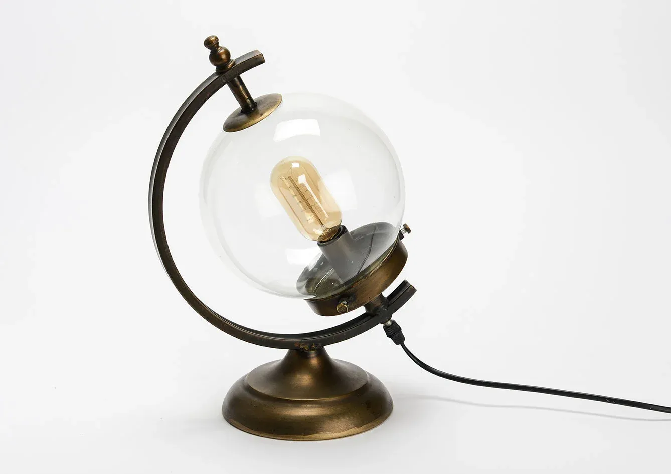 Conçu sur le même design qu’un globe terrestre, cette lampe à poser rendra votre bureau attrayant et plein d’inspiration. La protection en verre en forme de sphère qui entoure l’ampoule remplace la planète terre et apporte à l’objet une brillance au rendu chic. Grâce à sa structure en métal au fini vieilli, la lampe de bureau apportera une touche authentique à votre décoration, comme si elle vous racontait une histoire. Le travail ne sera plus un ennui, mais une source d’inspiration infinie!