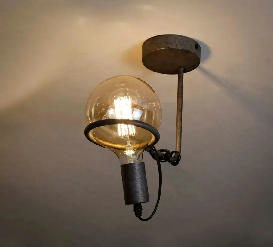 un plafonnier ou applique mural vintage, équipé d’une douille type E27 convient aux sources lumineuses LED d’un diamètre de 125 mm. Le luminaire est fini en argent vieilli, ce qui fait une lampe contemporaine avec une touche vintage