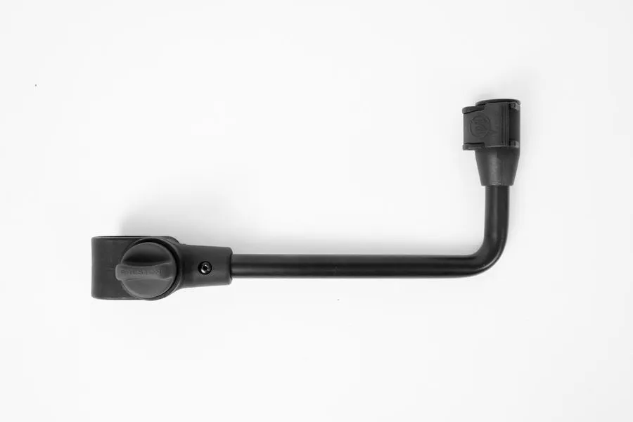 Support coudé 90°, peut être utilisé pour une multitude d’utilisation, équipé d’un insert « quick release » pour fixer bourriches, filets à déboiter, dessertes à esches.