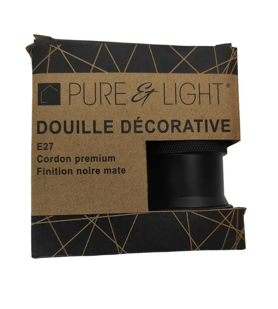 Belle suspension en métal noir, fil tissé noir pour ampoule type E27
