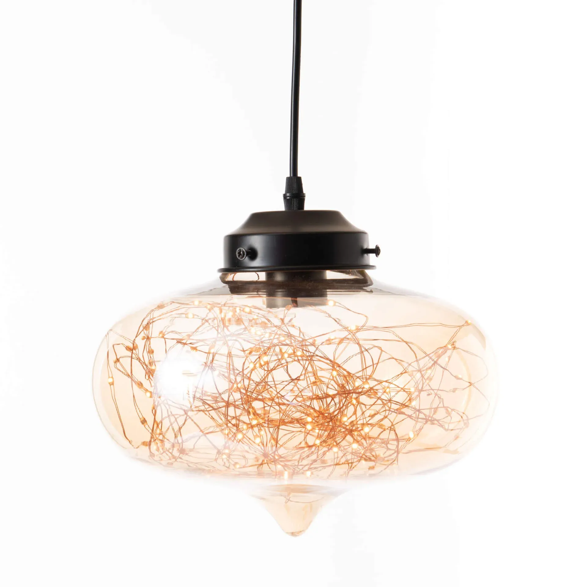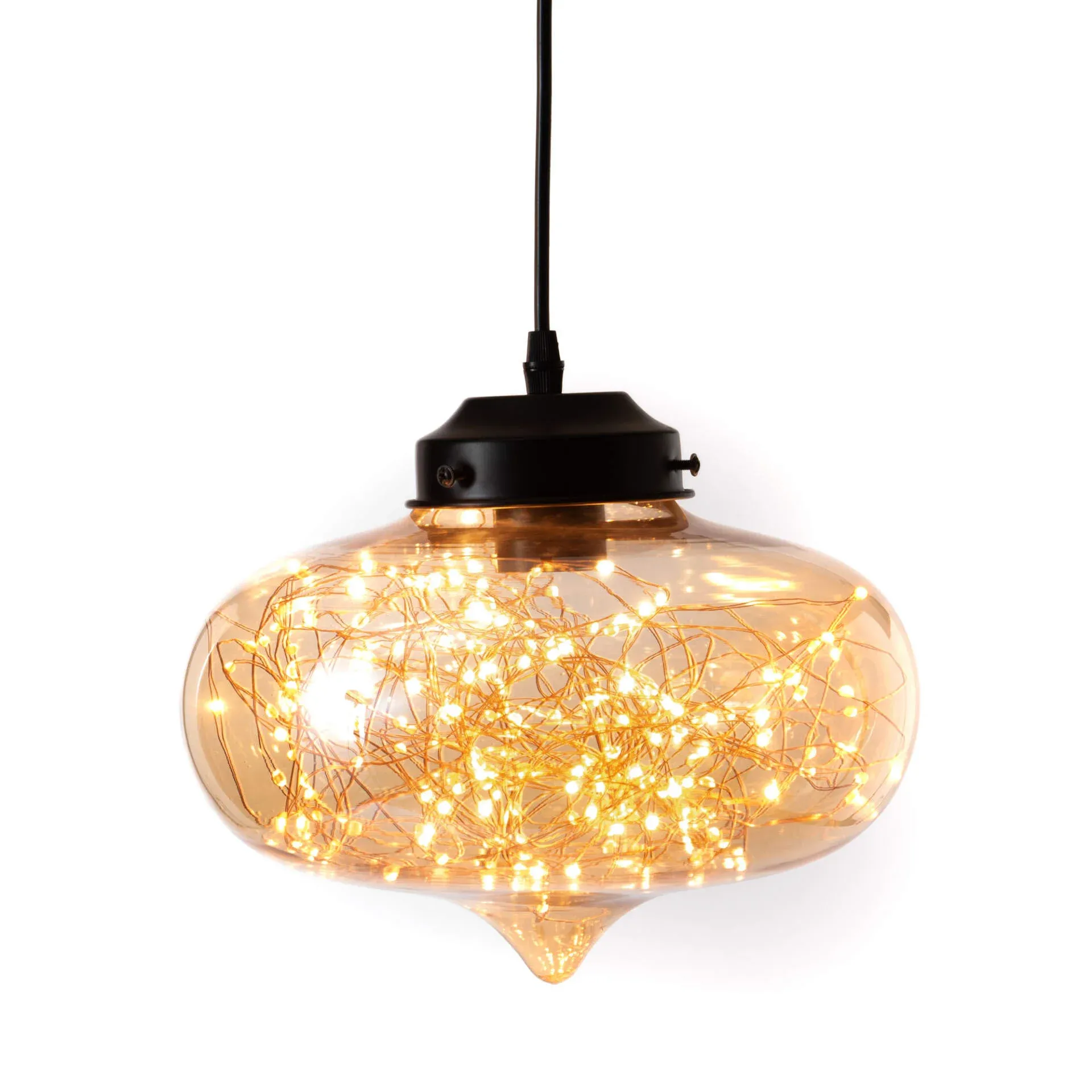 Suspension originale en verre et guirlande led couleur ambre modèle Lactéa