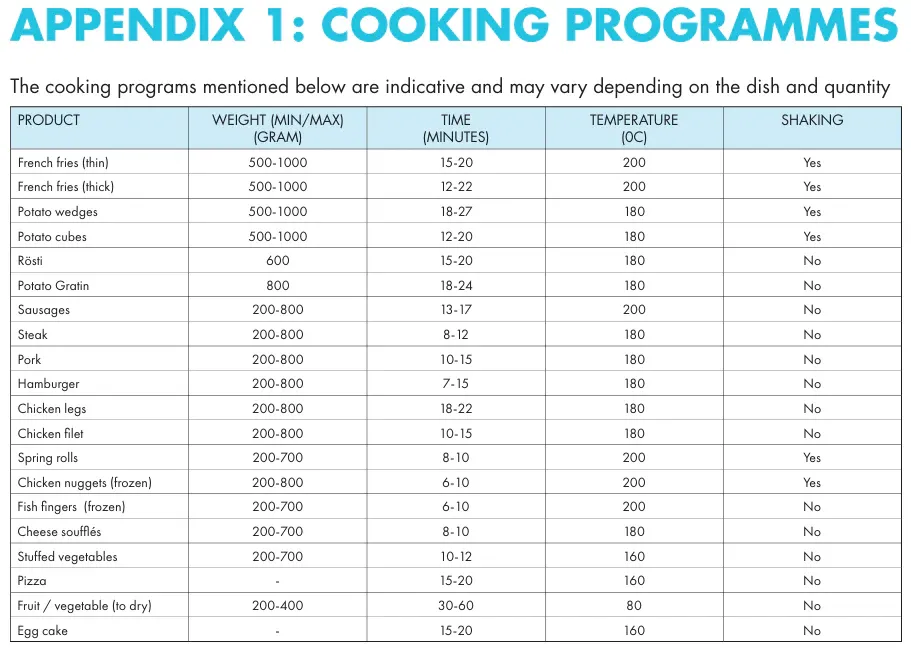 - Préréglage pour frites, poulet, poisson, snacks, légumes, gâteaux, réchauffage et plus